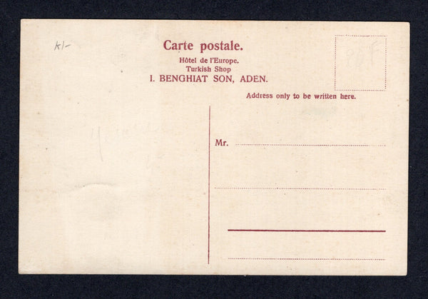 Circa 1910. Coloured PPC 'Aden - Maala View of Wharf' with 'Hotel de l'Europe. Turkish Shop, I Benghiat Son Aden' imprint, fine unused. Views of villages outside of Aden are less common.