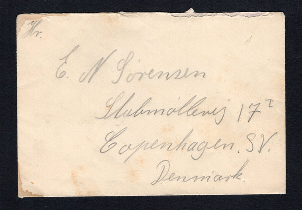 Stampless cover with manuscript 'ap Paul Sorensen, s/s Hans P Carl, Copenhagen' return address on reverse with red 2a and 1½a meter marks with ADEN cds dated 6 IV 1951 also on reverse with straight line 'S/S HANS P. CARL' ship marking in purple alongside. Addressed to DENMARK.