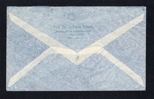 Airmail cover with 'Prof. Dr P. Busse Grawitz, Avenida 24 de Septiembre 1091, Cordoba' return address handstamp on reversefranked with 1935 5c orange brown, and 1936 40c purple & mauve and 1p light blue & chocolate (SG 653b, 658 & 660a) tied by two fine strikes of OF. POSTAL AMBULANTE E-131 cds dated 14 MAR 1939. Addressed to SWITZERLAND.