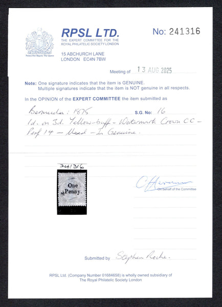 1d on 3d yellow buff QV 'Surcharge' issue, watermark 'Crown CC', perf 14. A fine lightly used copy. Some slightly ragged perfs at left. 2025 RPSL certificate accompanies. (SG 16)