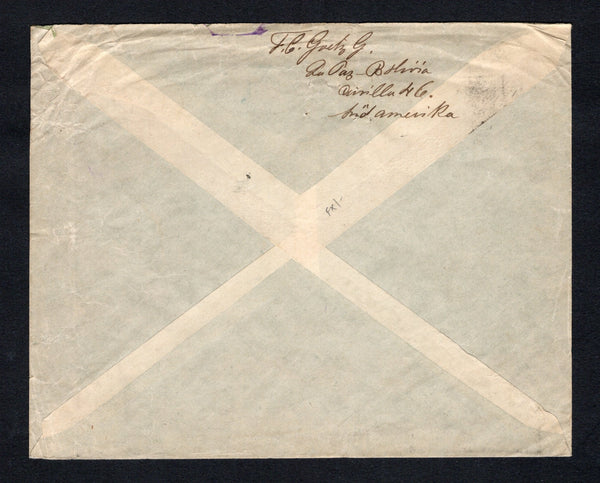 Stampless cover with manuscript 'F.C. Goetz G, La Paz, Bolivia, Casilla 46, Sudamerika' return address on reverse with fine strike of 'YACO' between lines marking in black with 'T' in circle TAX marking in red and manuscript '10' alongside plus unusual circular 'P.7.' marking in violet. Addressed to GERMANY with large manuscript '40' (pfennig) postage due mark in blue crayon applied on arrival. Very scarce.