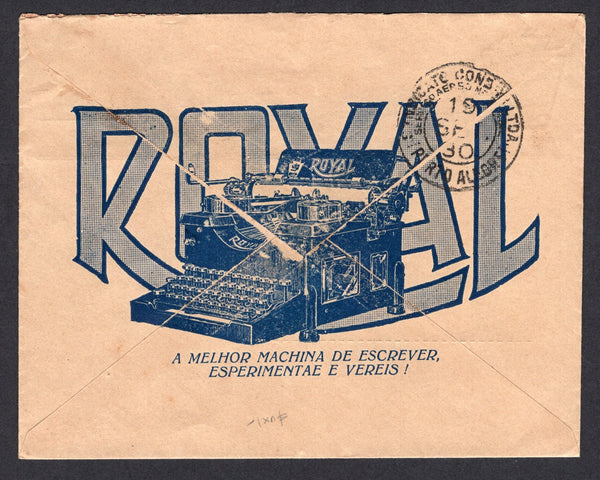Commercial cover franked with 1920 300rs rose red 'Industry' issue (SG 333) and 1927 pair 1000rs carmine CONDOR issue and 1930 50rs on 700rs orange 'Surcharge' (Sanabria #C3 & C11) tied by FLORIANOPOLIS CONDOR cds's dated 19 SEP 1930. Addressed to PORTO ALEGRE with 'M.P.' and straight line 'PELA CONDOR' markings in blue on front. PORTO ALEGRE CONDOR arrival cds on reverse. The surcharge issue is very scarce used on cover.