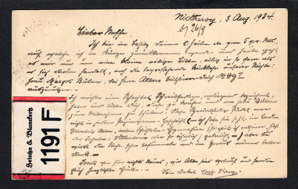 100r dull violet on grey white 'Exposition' postal stationery view card (H&G 43) with view: 'Rio de Janeiro: Praca Floriano e Avenida Rio Branco' used with added 1920 300rs rose red 'Industry' issue (SG 384) tied by NITEROI 4A SECCAO 2A T- DIA cds dated 3.VIII.1934. Addressed to GERMANY with full commercial message on reverse. A rare card in used condition.