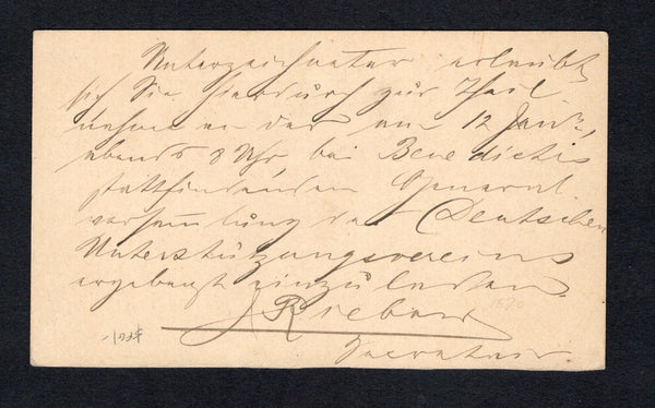 Circa 1883. 4c + 0c 'Fernandez' black on buff postal stationery replycard (H&G 2) the half with no value indicated used with SAN JOSE cds dated JAN 12 but without the year slug. Addressed locally within SAN JOSE. Fine.