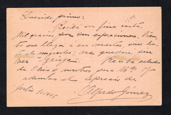 2c rose on pink postal stationery card (H&G 8) used with undated GRECIA cds in black. Addressed to SAN JOSE with arrival cds dated JUL 10 1905 on front.