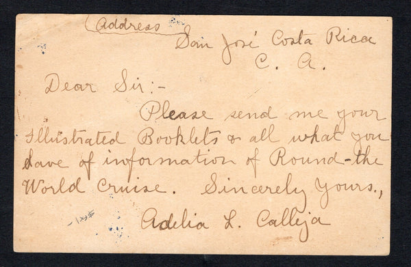 4c deep red violet on cream postal stationery card with 'HABILITADO 1914' overprint (H&G 16) used with added 1910 2c deep green (SG 78) tied by AMATA REDONDA cds in purple dated 26 AGO 1922 (San Jose branch P.O.). Addressed to USA.