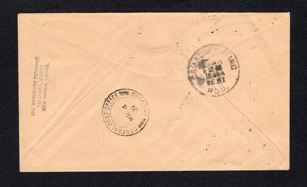 Cover franked with single 1931 20c brown AIR issue (SG 380) tied by HABANA machine cancel dated MAR 1 1931. Flown on the Camaguey - Port of Spain, Trinidad first flight by PAA F.A.M. 6 with CAMAGUEY cds dated 2 MAR 1931 on reverse and large boxed 'REPUBLICA DE CUBA ADMON. CORREOS HAVANA SERVICIO AEREO INTERNATIONAL PRIMER VUELO' first flight cachet in blue on front. Addressed to PORT OF SPAIN TRINIDAD with arrival cds dated MR 4 on reverse. Very scarce. (Muller #39, only 68 covers flown)