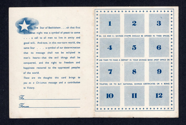 Illustrated National Savings stamps card produced for the British Forces in the Middle East with illustration of a British soldier keeping watch over Bethlehem. Unused.