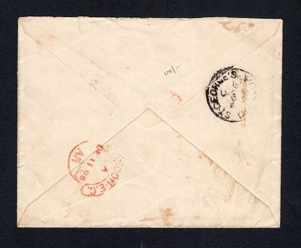 Cover franked with 1895 2½d mauve & ultramarine QV issue (SG 51) tied by two good strikes of Parish code 'C' cds of SAUTEURS P.O. ST PATRICK'S dated 26 NOV 1896. Addressed to UK with ST. GEORGES Transit cds and UK arrival cds on reverse.