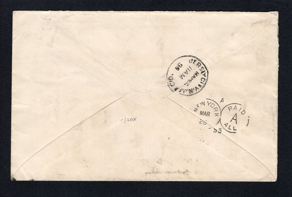 Cover with manuscript 'Per Dutch Steamer' at top franked with 1891 3c grey 'Upright Palms' issue and 1893 7c scarlet 'Drooping Palms' issue (SG 31a & 39) tied by three strikes of PORT-AU-PRINCE cds dated 18 MARS 1895. Addressed to USA with transit & arrival marks on reverse.