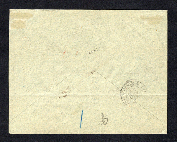 Cover franked with strip of five 1893 3c drab lilac and 5c orange vermilion 'Drooping Palms' issue (SG 37/38) tied by multiple strikes of PORT-AU-PRINCE cds dated 16 JUL 1893 with small boxed 'R' registration marking alongside. Addressed to FRANCE with arrival cds on reverse. A very attractive & scarce franking.
