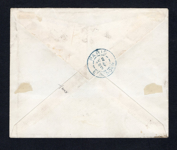 Cover franked with strip of five 1892 2c on 3c grey 'Provisional' SURCHARGE issue (SG 34a) tied by multiple strikes of PORT-AU-PRINCE cds dated 13 AVRIL 1893. Addressed to FRANCE with good strike of octagonal LIGNE F PAQ FR. No.1 French maritime cds on front and PARIS ETRANGER arrival cds in blue on reverse. Some very light tones around the perforations of the stamps but otherwise a superb franking.