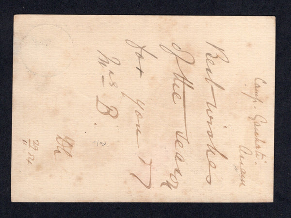 1½a blue QV postal stationery card (H&G 2) datelined 'Gauhati Camp, Assam' used with RANGIYA cds dated 19 NOV 1884. Addressed to IRELAND with BOMBAY transit cds on front. Some light toning.