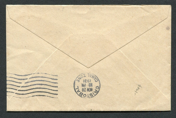 Cover franked with USA 1926 15c olive brown AIR issue (SG A629) tied by good strike of 5th REG U.S.M.C. MANAGUA NICARAGUA cds dated NOV 28 1931. Addressed to CANAL ZONE with CRISTOBAL arrival cds on reverse.