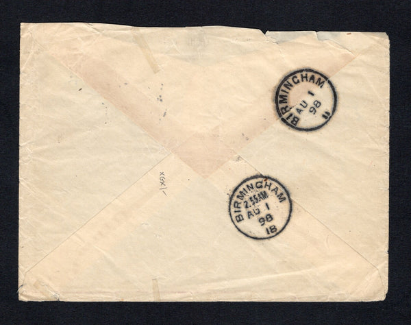 Cover franked with 1895 2½d purple on blue QV issue of Great Britain (SG Z47) tied by fine complete strike of large boxed THE ROYAL NIGER COMPANY CHARTERED & LIMITED POST OFFICE BURUTU marking in black (BURUTU in sans-serif letters) dated 27 JUN 1898. Addressed to UK with PAID LIVERPOOL BR PACKET cds on front and arrival cds's on reverse. Cover is slightly trimmed at top with a couple of edge faults but rare.