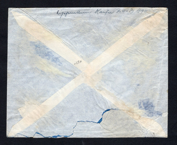 Airmail cover franked with pair 1927 5m orange (SG 93) tied by MOUNT CARMEL cds dated 6 DE 1938. Addressed to UK.