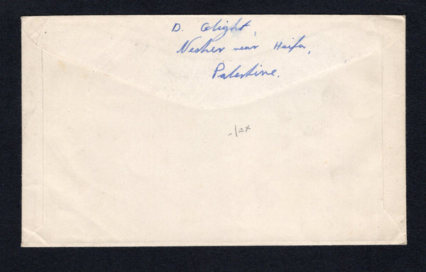 Cover franked with 1927 5m yellow and 50m deep dull purple (SG 93b & 100) tied by YAJUR NESHER cds dated 26 MR 1946. Sent airmail to FRANCE with blue airmail label on front.
