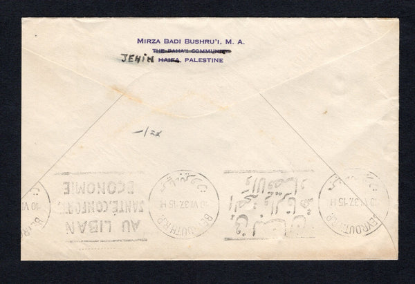 Cover franked with single 1932 15m ultramarine (SG 108) tied by JENIN cds dated 9 JUN 1937. Addressed to BEIRUT, LEBANON with arrival mark on reverse. A scarcer origination.