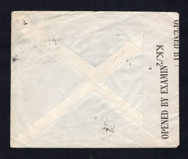 Cover franked with 1927 20m dull olive green (SG 99) tied by JERUSALEM cds dated 29 JY 1945. Addressed to SWITZERLAND and censored in Palestine with printed black on white 'OPENED BY EXAMINER KK/24555' censor strip at left.