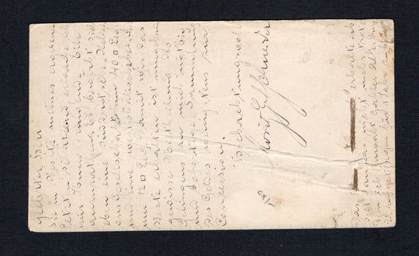 3c blue on white 'Lion' postal stationery card (H&G 2, Paraguay Postal Stationery Catalogue #PC2) used with fine ASUNCION cds dated 27 JUN 1882. Addressed to GERMANY with two different BUENOS AIRES transit cds's and German arrival marks all on front. Full commercial message on reverse. Card is creased but a very scarce early use, the earliest known being 21st May 1882.