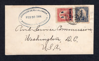 Cover franked with 1903 12c slate and 1905 1c on 2c carmine 'Provisional' SURCHARGE issue (SG 491 & 523) tied by dumb 'S' cancel with large oval CORREOS DE EL SALVADOR NEGOCIADO DEL EXTERIOR cancel of SAN SALVADOR dated FEB 20 1906 alongside. Addressed to USA with arrival cds on reverse.