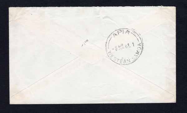 Cover franked with 1952 2d carmine red and 3d pale ultramarine & indigo (SG 221/222) tied by FAGAMALO cds dated 24 FE 1961. Addressed to UK with APIA transit cds on reverse.