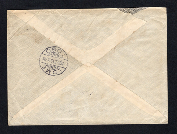 Printed 'Societe Commercial de L'Ouest Africain' cover franked with single 1912 2½d deep blue GV issue (SG 116) tied by FREETOWN cds dated FE 1 1919. Addressed to LOME, TOGOLAND with LOME TOGO arrival cds on reverse.