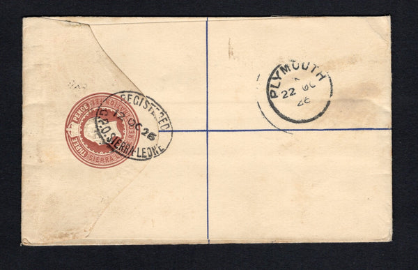 3d brown on cream GV postal stationery registered envelope (H&G C4) used with added 1921 2d grey GV issue (SG 134) tied by oval REGISTERED G.P.O. SIERRA LEONE cancel dated 12 OC 1926 with boxed 'FREETOWN' registration handstamp on front. Addressed to UK with arrival mark on reverse.