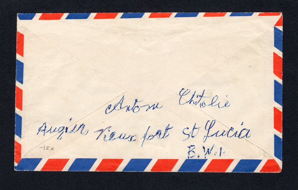 Airmail cover franked with single 1953 5c violet QE2 issue (SG 176) tied by AUGIER cds dated 30 OC 1961 with fine second strike alongside. Addressed to ST. VINCENT.