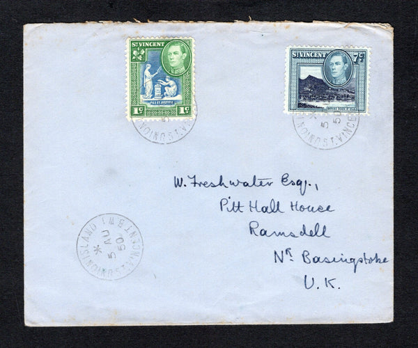 Cover franked with 1949 and 7c blue black & blue green GVI issue (SG 164 & 170) tied by UNION ISLAND cds's dated 5 AU 1950. Addressed to UK.